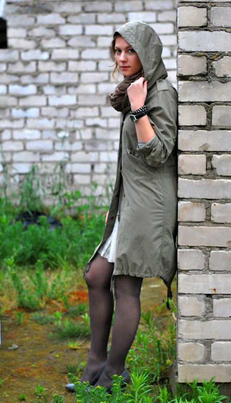 It has been raining a lot in Lithuania during the past few days. Parka is perfeckt for days like those. I like to mix clothes of different styles. So I chose girly, lace dress with khaki parka for todays outfit.